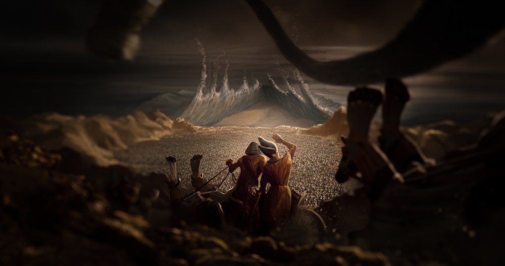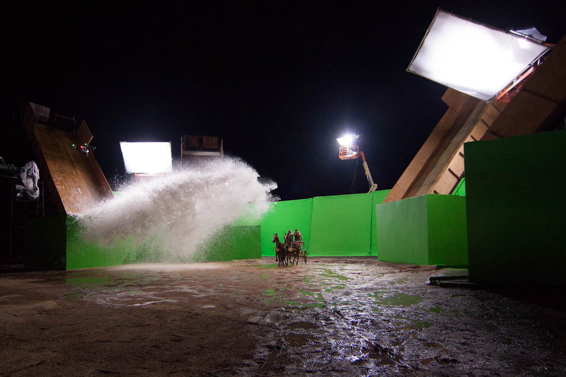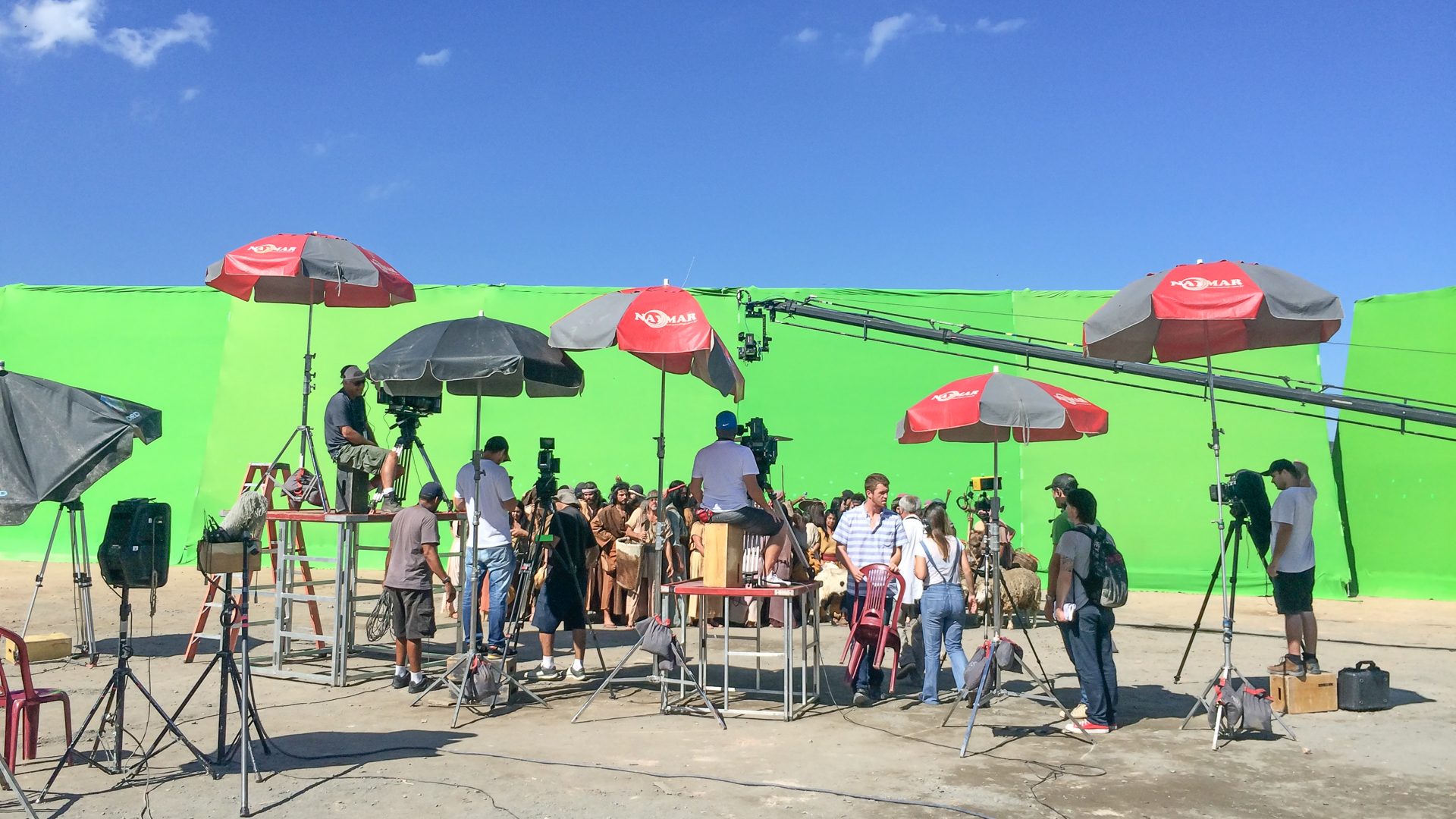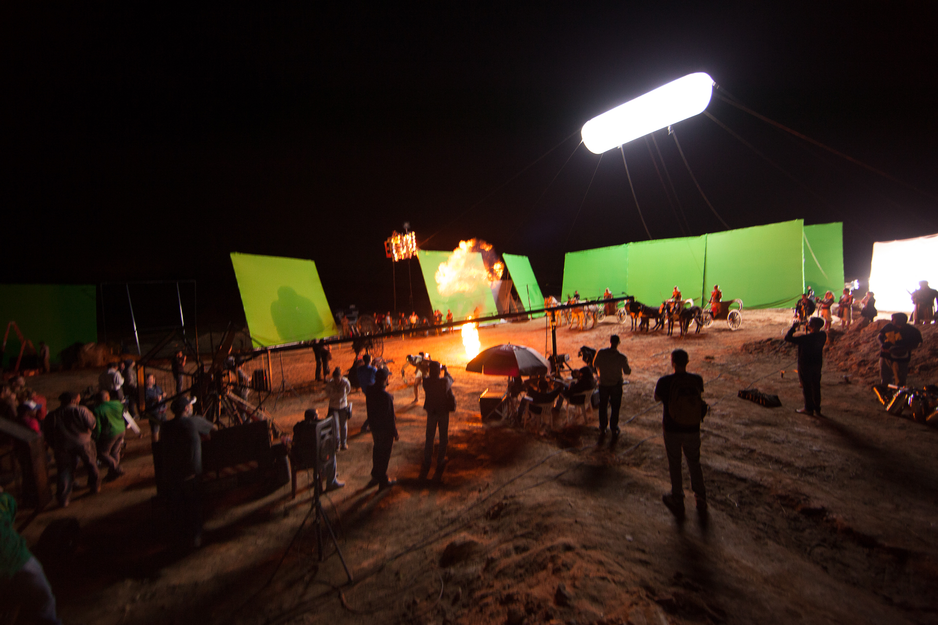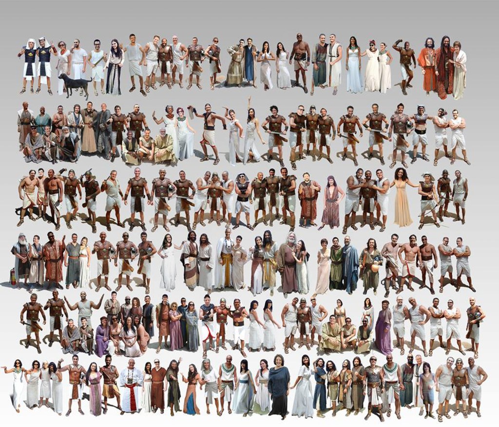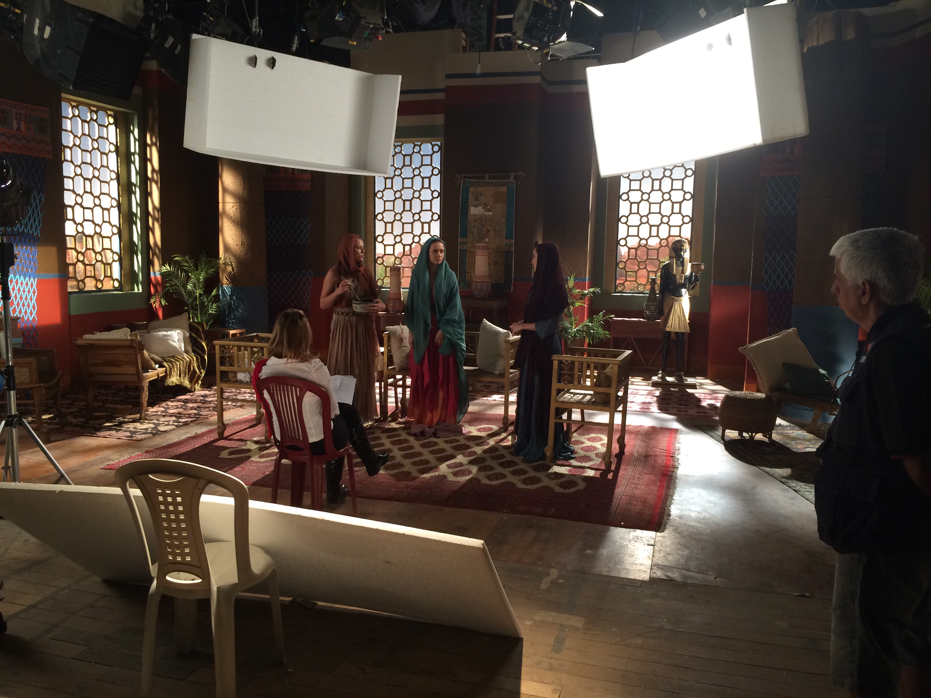 As filmagens, de proporção bíblica, tinham centenas de figurantes e quase sempre grande parte do elenco envolvido. O posicionamento correto da luz de efeito que reagia aos eventos bíblicos trouxe mais realismo para a composição final da CG. Entretanto eram muitos planos. Centenas de figurantes e todo o elenco, muitas noites e dias de sol quente! É chroma pra todo lado!