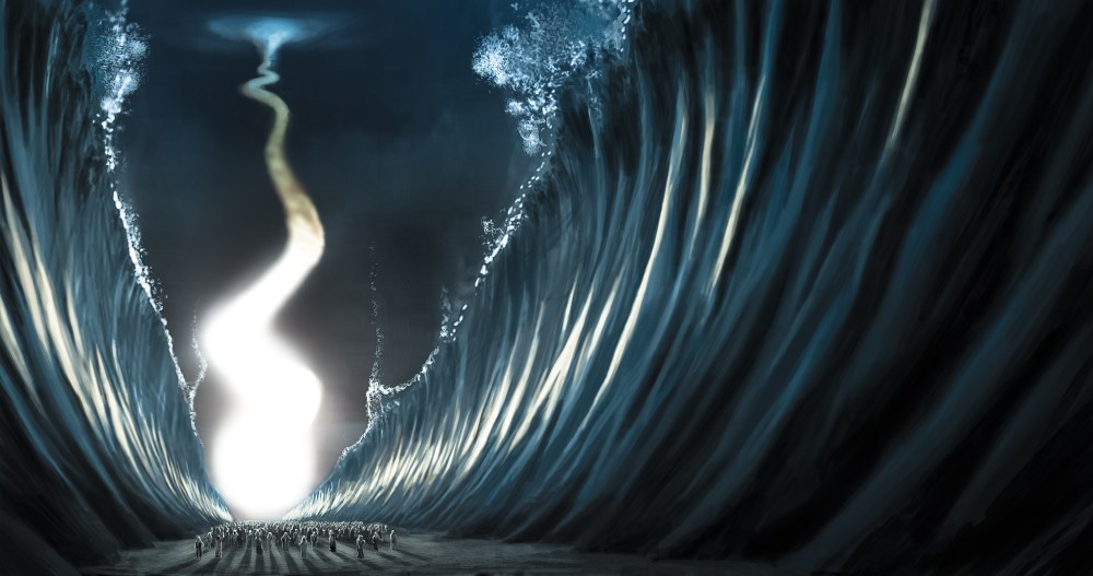 Testes do “splash” para a cena do fechamento do mar vermelho