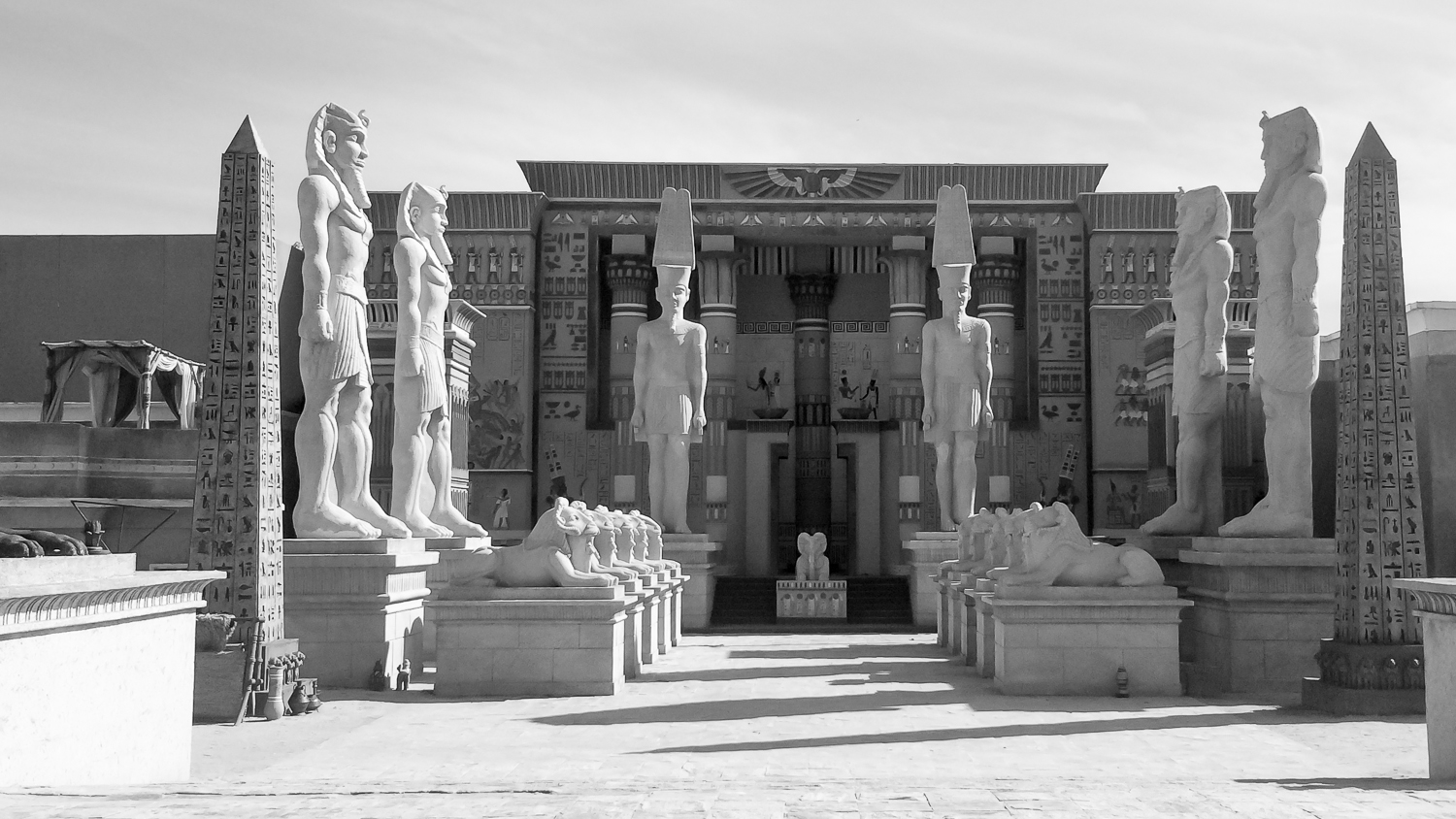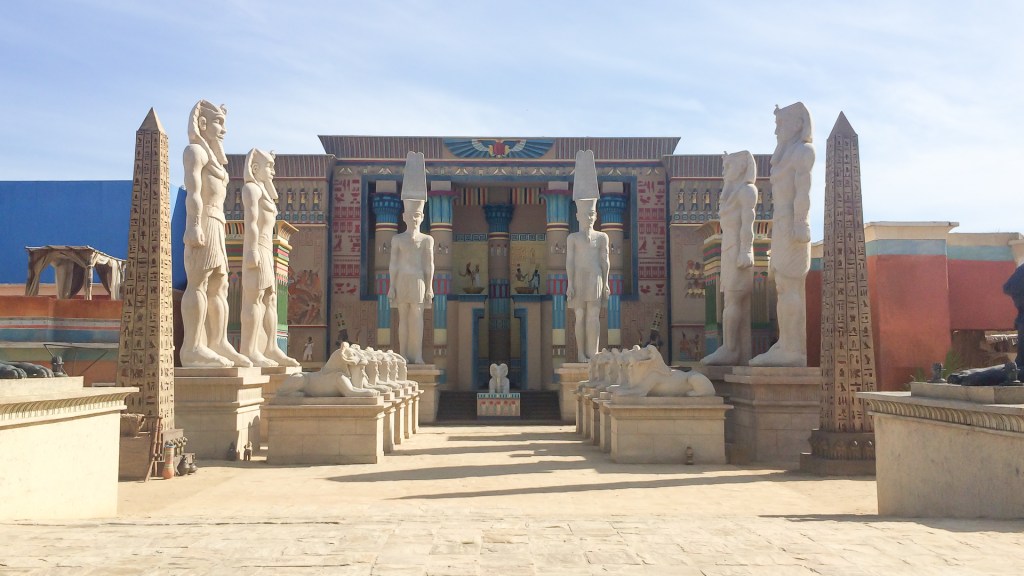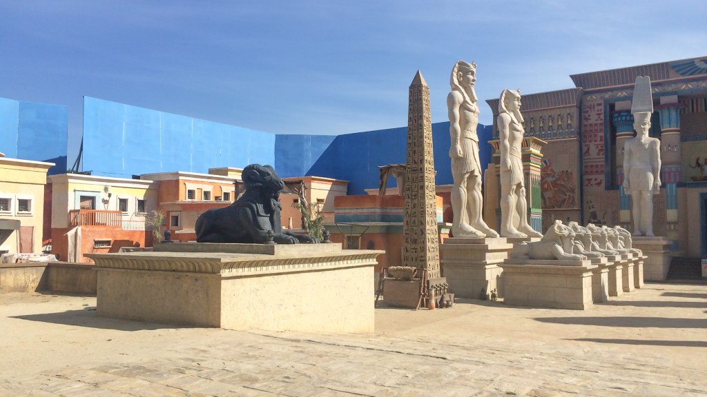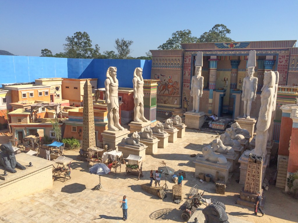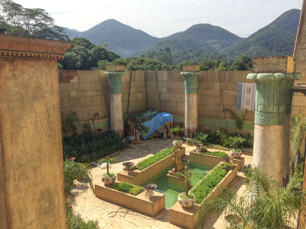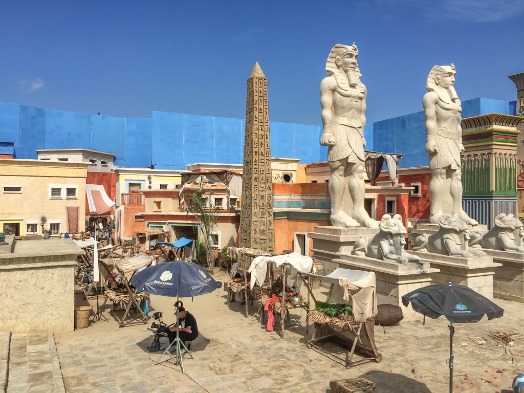 A Cidade Cenográfica tinha o templo em escala real a rua de acesso ao palácio o comercio e residencias ao redor e ainda a vila dos hebreus. Toda cidade era contornada por um chroma para complementação em CG.