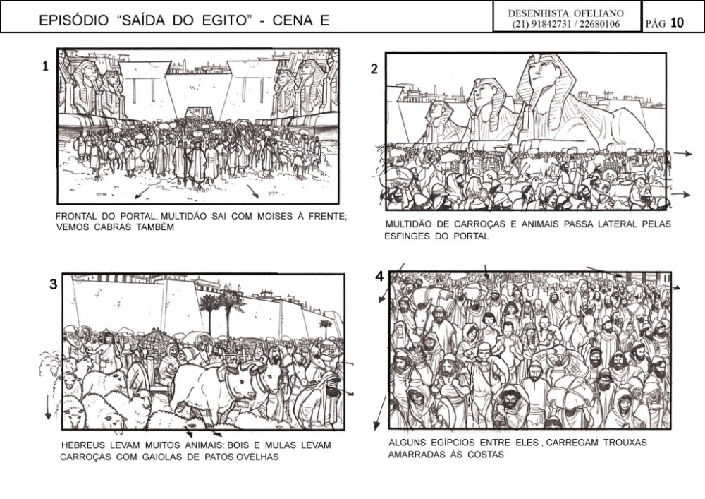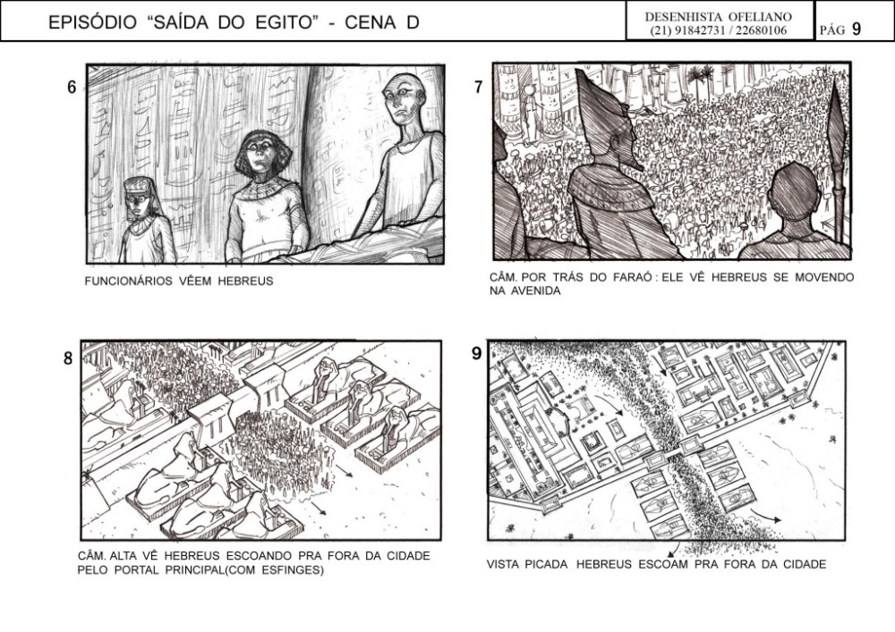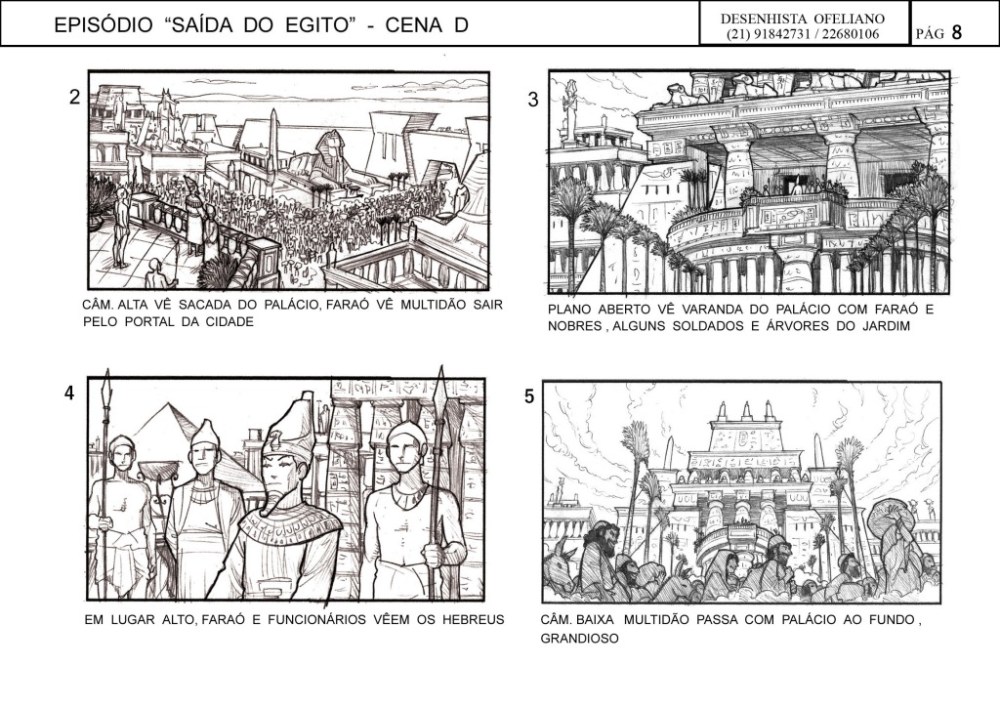 O Ofeliano fez o storyboard para cada sequencia e depois um concept final dos principais takes. Tudo para garantir o entendimento das equipes envolvidas. Cada take é desenhado com a supervisão do diretor, Alexandre Avancini e acompanhado por toda sua equipe. Aqui vale aquele ditado: “entendeu ou quer que desenhe?”