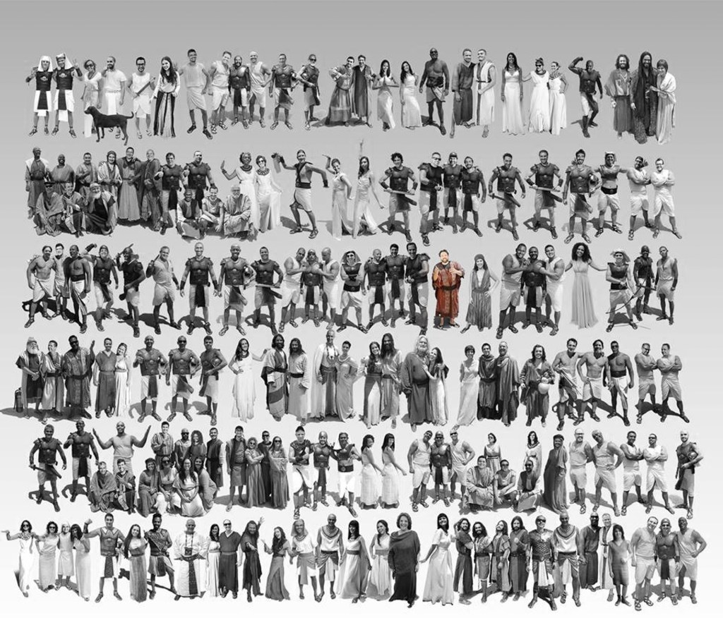 Quase toda equipe e elenco de “Os 10 Mandamentos” na arte do incrível Geninho Galvão ___/\___